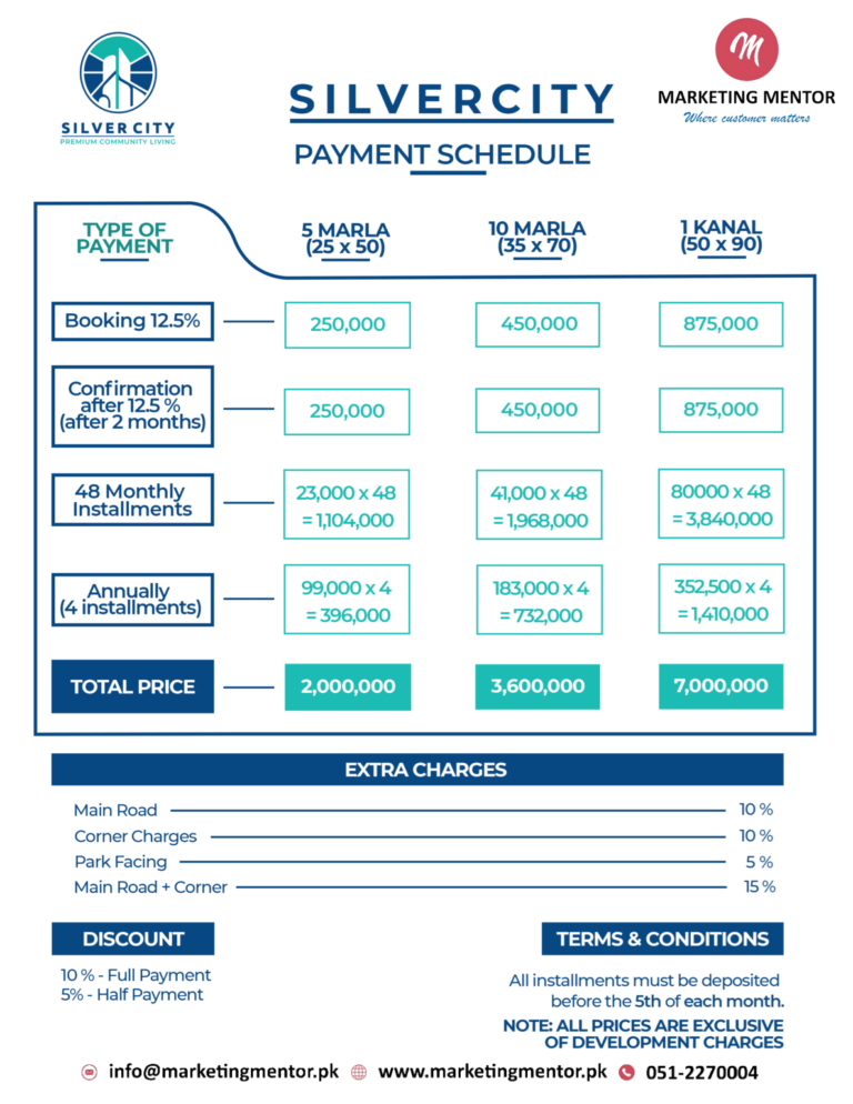 The Silver City Rawalpindi is offering several residential plots in different sizes: